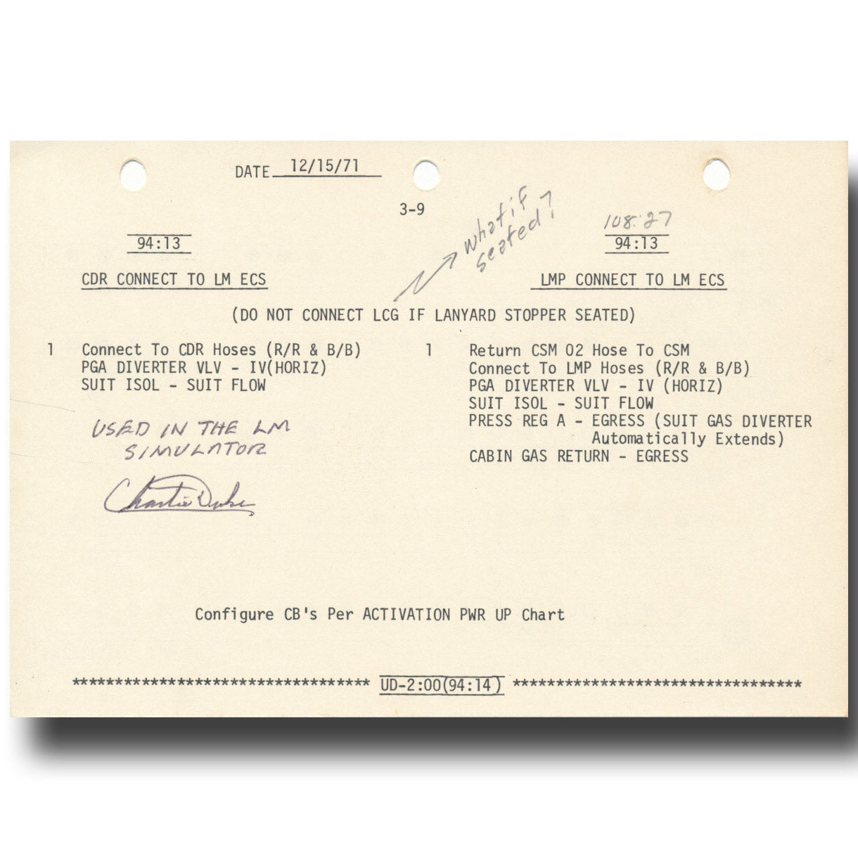 Apollo 16 LM activation checklist – training used checklist Duke 3-9/3-10